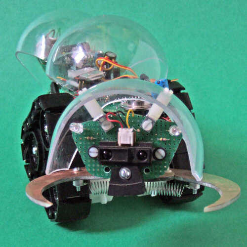 Se mide la distancia al objeto y luego salidas a un voltaje que es proporcional a la distancia. Esto se alimenta a la entrada del controlador Picaxe y su ADC (convertidor analógico a digital) se utiliza para convertir el voltaje a un número que el programa interpreta al robot a qué distancia está el objeto.