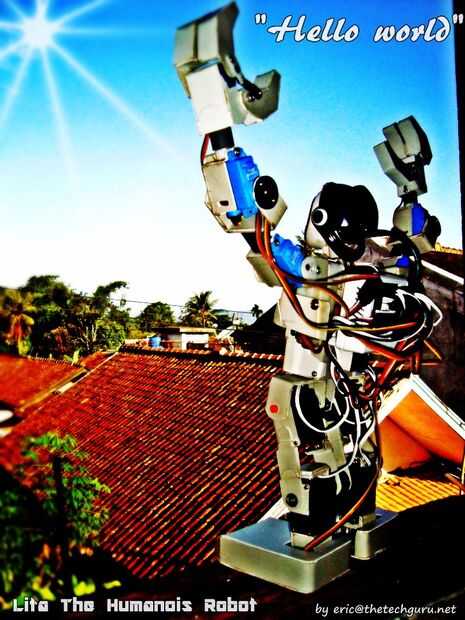 robot humanoide me llamo Lita, utilizando el Ez-tablero de Ez-robótica puede easly robot de movimiento del programa y hay tiene cámara para controlar el robot usando imagen prossesor. EZ-robot.com. utilizando 16 servo actuador y 2cell batería lipo para la energía.
