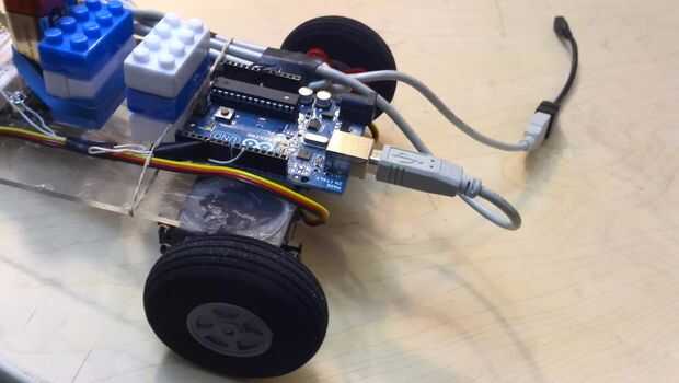 Envolvió mi cable con cinta y luego la até al robot con un elástico.