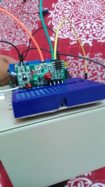 Tome una pequeña cantidad de cinta de doble cara y ponerla en el extremo anterior del chasis. Coloque el mini protoboard con el módulo receptor en él y presiónelo para asegurar a la plataforma.