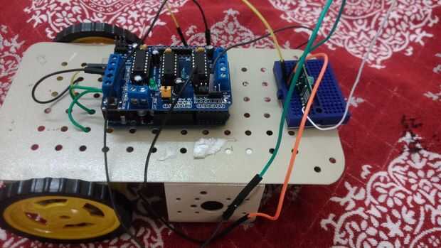 Paso 4: Montaje del Arduino + receptor + protector de Motor en el chasis