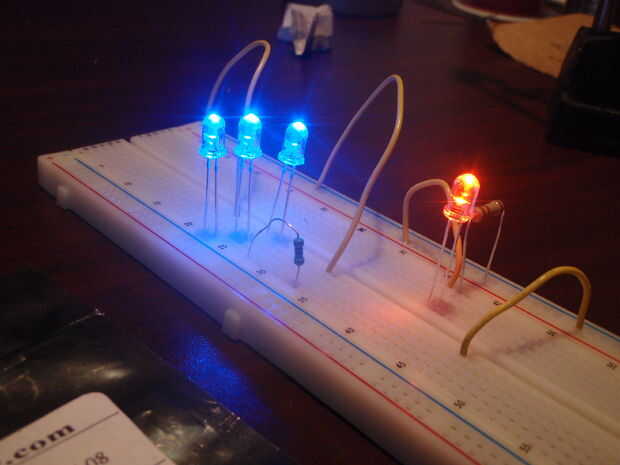 4. Repita el proceso para cada conjunto de tres LED, pero mantener el rojo y el naranja/ámbar en el mismo circuito.