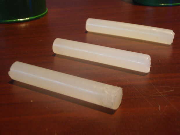 (Seguir este proceso con los tres palillos del pegamento. Asegúrese de que usted seguimiento de los lados azules y los costados naranja/ámbar!)