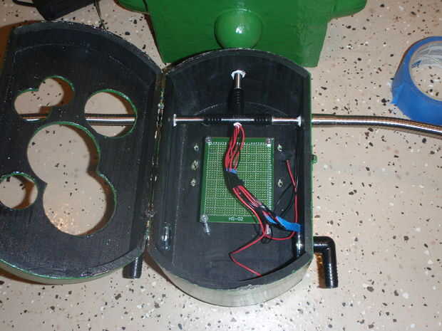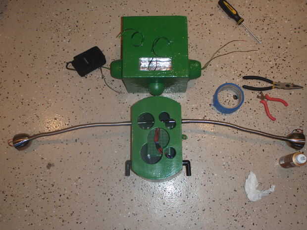 3. agarra sus brazos y gromets y ponerlos en su lugar. Deslice los cables desde los brazos a través del mismo agujero que los cables vienen de la cabeza. Ahora todos los cables de la cabeza y ambos brazos deben todos ser que sale un agujero justo encima de donde estará la Junta.