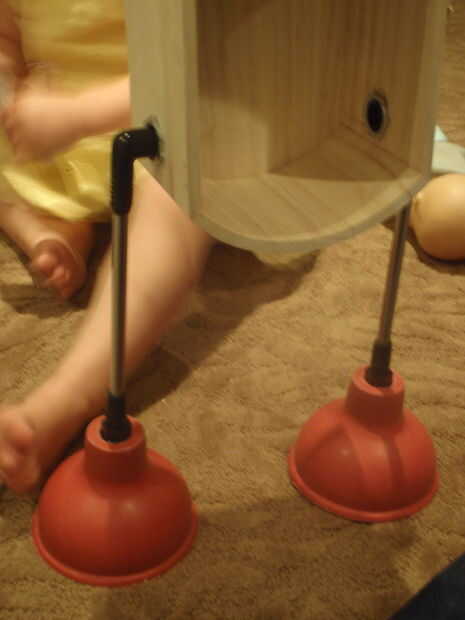 Encontrar el agujero broca de sierra que se ajusta el tamaño del extremo de Swing conjunto codo 1/2 pulgada de órbita. Marcar donde quieres que haga en su cuerpo (la caja de madera). Es muy importante donde se colocan estos--usted debe asegurarse de que se colocan uniformemente a cada lado, así que asegúrese de medida y comprobar antes de perforar.