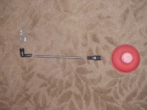 1. el cuadro siguiente establece el orden en el que las piezas encajan entre sí. Desde el interior de las piezas de plástico en el extremo del tubo de robar no tiene hilos de rosca en el interior, necesita crear algunos de sus propios hilos.