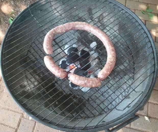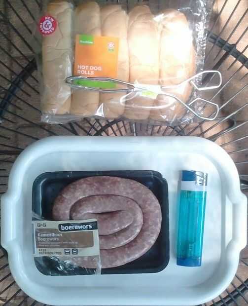 Normalmente encender el fuego, esperar 20 a 30 minutos y luego "braai" / cocinar la carne, en este caso la salchicha.