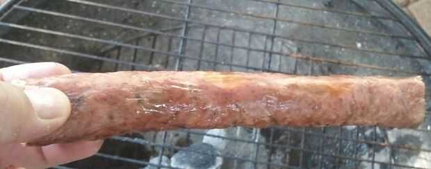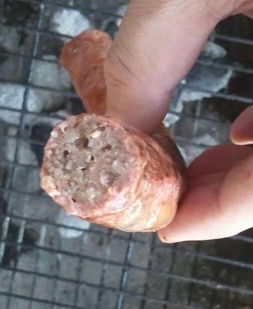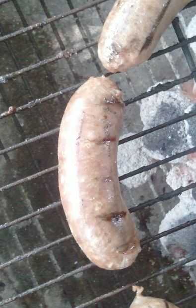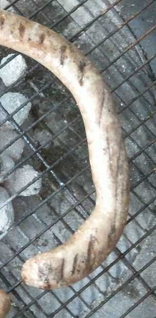 Poner la salchicha a la parrilla un poco lejos de y no directamente sobre las brasas. Dejar un rato y comience a girar la salchicha. Cuando el chorizo empieza a rigidez, sabes casi se hace y el interior debe ser cocinado.