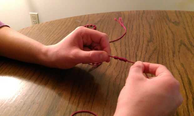 Mi hijo tuvo que hacer un rosario de cosas que estaban alrededor de la casa. Tuercas y arandelas, legos, palomitas etc.... todo hecho antes. Mi esposa vio que un florero lleno de turcos cabeza nudos que he atado sobre los años y que era él.En cuanto