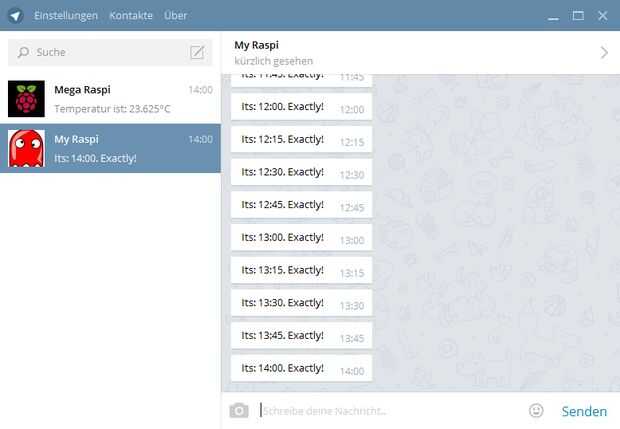 Tomemos por ejemplo el tiempo. Decir que quiero un mensaje cada 15 minutos con la hora actual. Bien también podríamos hacerlo con el (cron)-función en el script lua, pero esta vez lo hacemos con un script de bash llamado sendtime.sh: