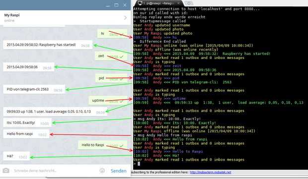 Si todavía está conectado con su raspi, entonces tu messenger debe ser activa ahora.