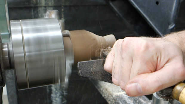 Tome un pedazo de madera que se encuentran bien de convertir en un mango y fijar en su torno. Yo no soy un tornero de madera para que no se ofrecen cualquiera de las técnicas sobre cómo hacer el mango de la pieza de madera, que sólo quitar bastante material hasta que termines. Un pie rápido y debe hacerse.