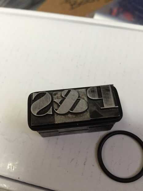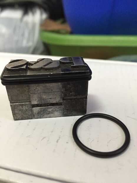 Tomar el tipo y 2 juntas tóricas (que se encuentra en la sección de fontanería de una ferretería). Envuelva los anillos alrededor de la parte superior del tipo y asegúrese de que estén juntos y nivel. Si tienes tipo de diferentes tamaños o tipos de letra, este paso puede ser más difícil. Lo importante es que las caras del tipo son todos los niveles y se presionarán sobre el papel al mismo tiempo al estampado. Los O-rings también selle alrededor de la madera y tapar los errores que usted hizo al cortar.
