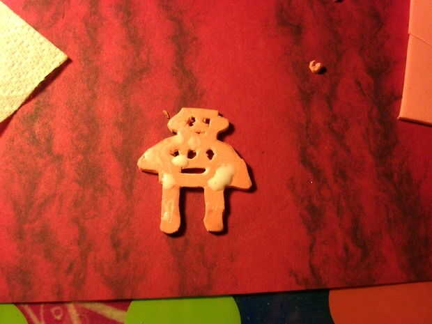 Ahora del tirón le pegamento encima y poner algunos en la parte posterior. Lo voltee y lo puso en la tapa de jugo.