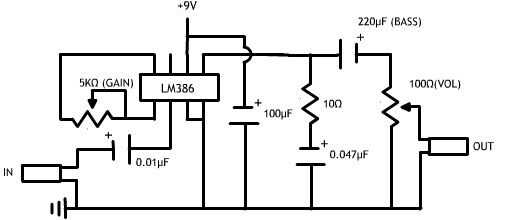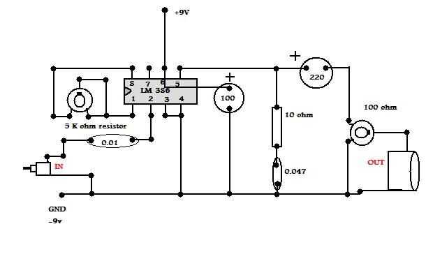 es un amplificador de AUDIO muy sencillo que utiliza una cañería IC 386 THT usted puede conseguir fácilmente de RADIO SHACK o cualquier electrónica ordinaria tiendaPaso 1: Tomar una clavija de entrada de AUDIO Fije dentro del circuito quePaso 2: Adju