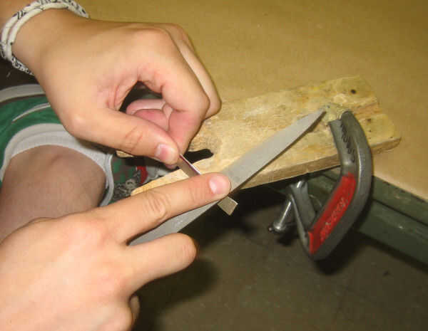4. limar los bordes usando el archivo grande para hacer los bordes lo más recto posible.