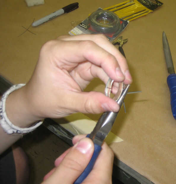 4. Tire de los extremos del alambre alrededor de la banda, les torcer con plyers mientras cumplen.