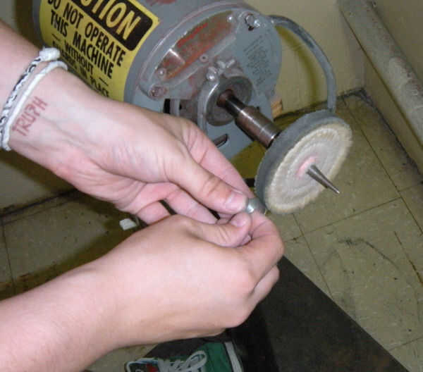 Banda se verá ligeramente áspera; paso a paso pulido para crear un anillo brillante.