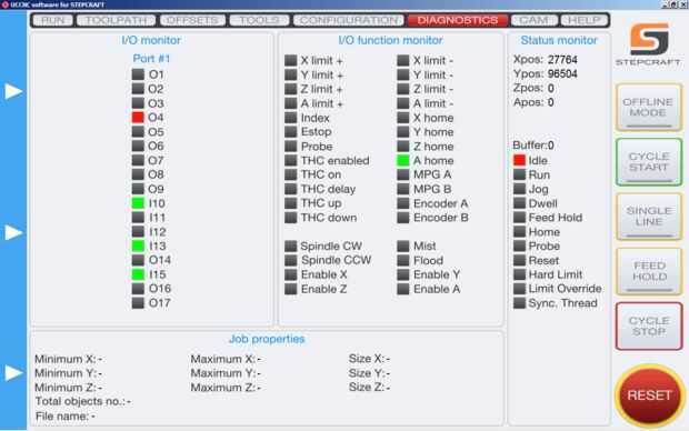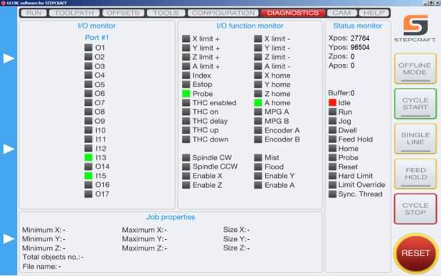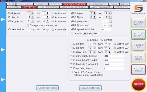 Enchufe el molino y abrir UCCNC. Vamos a probar primero el interruptor.