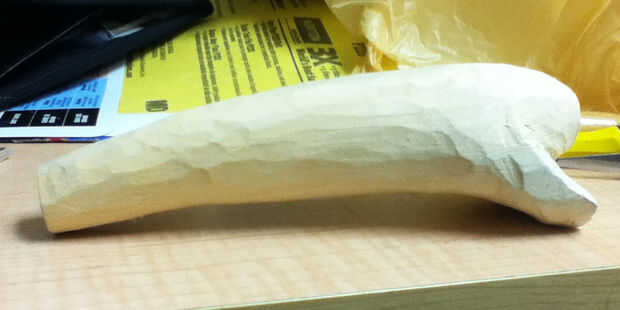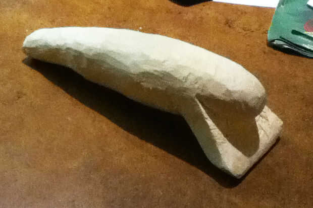 He comprado cuchillos de talla Flexcut en Amazon que parecía muy alta calificación y no es terriblemente caro y pensé que podré usarlas durante mucho tiempo. Comencé la talla por que forma la cabeza y parte delantera del labio primero para que el resto del diseño podría seguir desde allí. La espalda y el vientre son bastante fáciles porque solo son formas muy graduales y suaves. Alrededor de los labios, utilizando una dremel para cortar las esquinas afilados podría llegar a ser una estrategia más rápida y mejor.