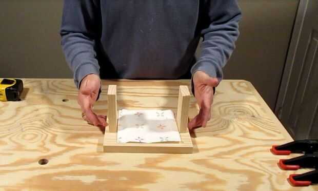 Una servilleta estándar mide aproximadamente 6 "x 6". Es no es exactamente cuadrada, pero es lo suficientemente cerca como para que realmente no importa. Si colocar la base para que el pliegue de la servilleta y frente a, las columnas van a ser perpendiculares al grano largo de la base. Me permite 1/4" todo el camino alrededor de la base un roundover. Incluí y extra 1/4"(1/8" a cada lado) entre los postes por lo que sería una pequeña sala de meneo para las servilletas.