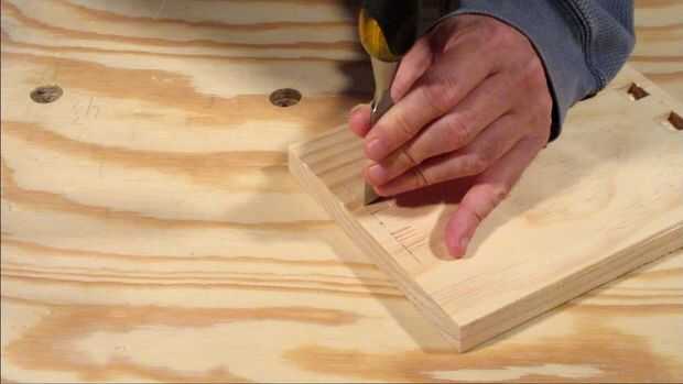 Nota: Permanecer dentro de las marcas del lápiz asegura que la longitud de las mortajas será menor que la longitud de las espigas. Como mencioné en el paso 2, "dejé la espiga un poco más gruesa que lo necesario, para ser pared más adelante para caber la mortaja precisamente". Como una regla en la carpintería, la espiga se hace para caber la mortaja - no al revés. Siempre puede comparar la espiga hacia abajo, pero no puede hacer más pequeña una mortaja.