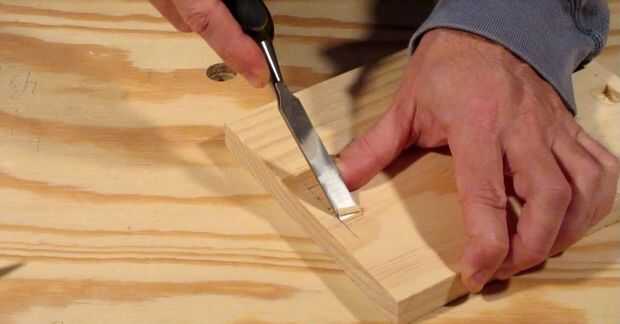Está bien dentro de las líneas de lápiz que definición la longitud de las mortajas, picado hacia abajo a una profundidad de 3/16".
