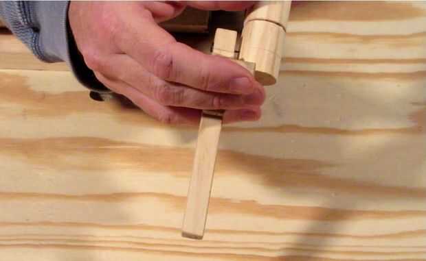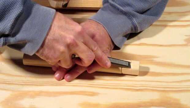 Puesto que el diámetro de la muesca se supone para que coincida con la ranura de corte en las columnas, puede usar la posición vertical para comprobar su progreso. Cuando las muescas se encajarán en la ranura, se puede detener. Lijado final al final reducirá el diámetro incluso más, para asegurar que el tornillo puede girar libremente en los montantes.