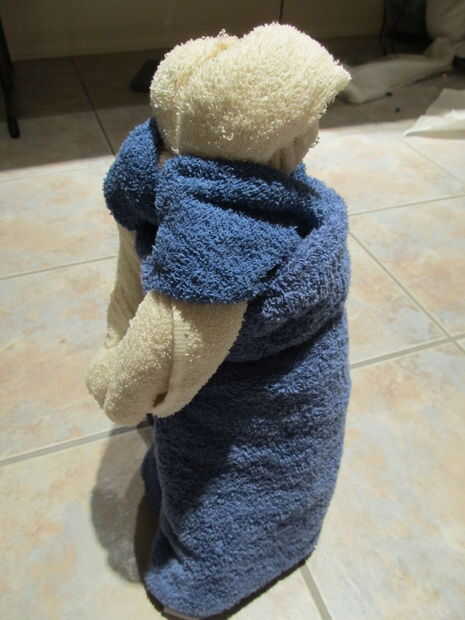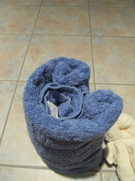 4. Tome su correspondiente lavado de ropa, (2 para el Gal, 2 para el hombre) y doble 2 esquinas diagonales hacia el centro.