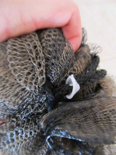 Nota: Para hacer el pelo cabello solo desenreda el cabello por el corte de la corbata de centro. Se reúnen unas rayas junto con una banda de caucho y luego triturar los extremos un poco más con sus tijeras.