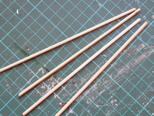Necesita cuatro idénticas longitudes de corte de sus pinchos de bambú. Hice mía la misma longitud que los palitos, pero usted puede ir con su propio sentido estético.