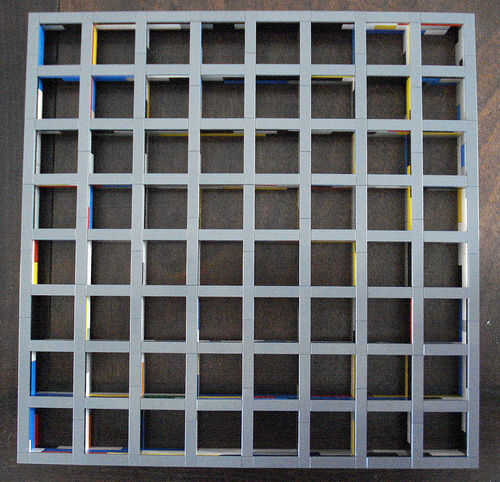 La segunda imagen muestra la cuadrícula acabada de Lego. Tenga en cuenta que no tiene ninguna base (se puede ver la tabla). Todo lo que se necesita para hacer un tablero de Lego es añadir paneles planos para cubrir la base.