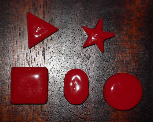 -Las dos primeras fotos muestran algunas piezas hechas de arcilla polimérica. Consiguió algunas formas de galleta pequeña, luego cortar un bloque de arcilla (tres capas de la configuración más gruesa en la máquina de pasta, apilada juntos), poner en el horno y finalmente añadir algún brillo.