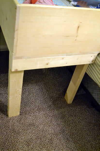 Las dos patas delanteras no tenga ningún brackets y dependen fijarán bien en la esquina de la horizontal 2 X 4 para la fuerza. Utilice la Plaza de estructura para asegurarse de que están en recto al introducir los tornillos en.