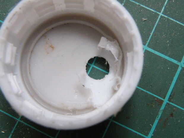 Dentro de la tapa, rasgar hacia fuera la guarnición de la PAC de alrededor del agujero - esto hace que el borde del agujero más fino y mejor a partir del aire.