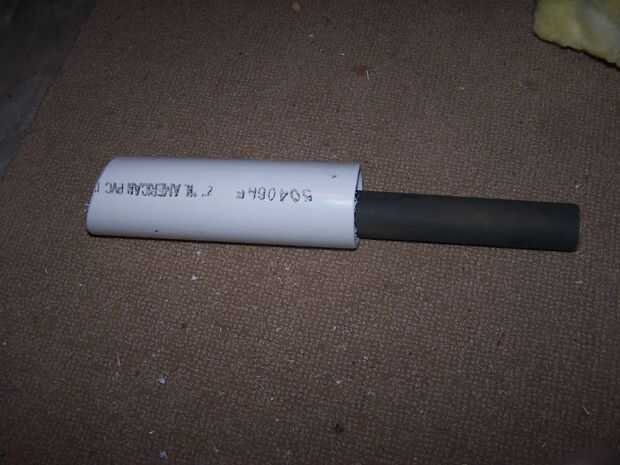 Poner el pedazo más pequeño de PVC en el centro de la más grande y llenar todo el espacio interior con el aislamiento
