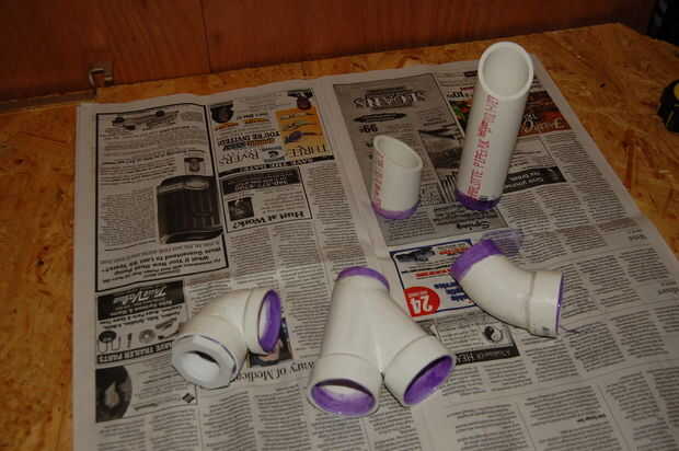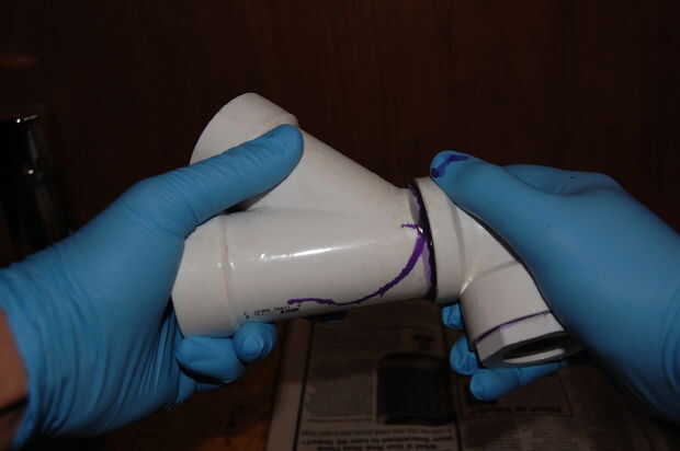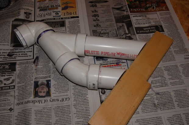Al llegar a los dos tubos rectos, mira a ver que los extremos del ángulo son paralelos y utilice un borde recto para hacer los ángulos se alinean muy bien. Un 2 x 4 hizo un práctico borde recto a la prensa contra hasta que el pegamento ha comenzado a establecer.