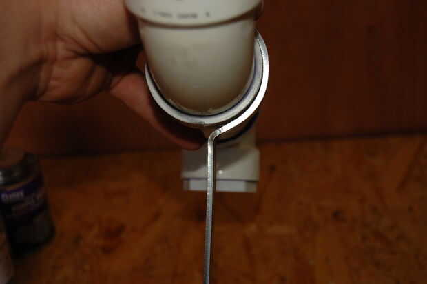 Usé un tornillo de banco y varios objetos diferentes para ayudar a la derecha de la curva. Lo que funciona mejor es empezar aproximadamente 3" desde el final, hacer una leve curva, deslícelo hacia fuera cerca de ¼" y hacer otra curva ligera y continúe esto hasta que hace casi un semicírculo.