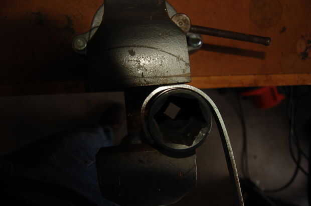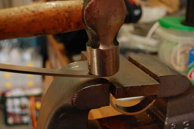 Si usted está usando un tornillo de banco, tomar un martillo al 90 * curva para aplanar hacia fuera un poco mejor.
