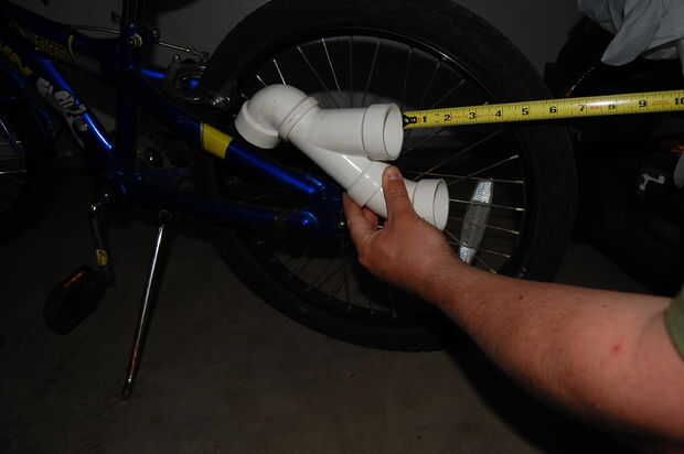 No recomiendo dejar las tuberías se extienden más allá de la llanta, simplemente porque los niños se hacen hacia atrás las cosas demasiado fácilmente.
