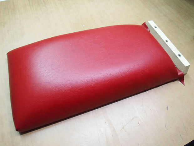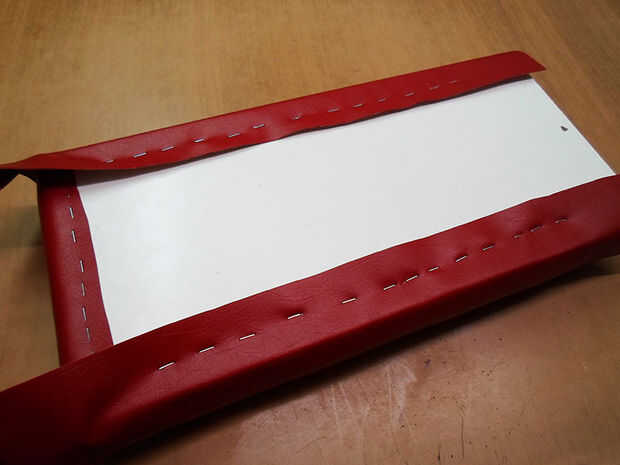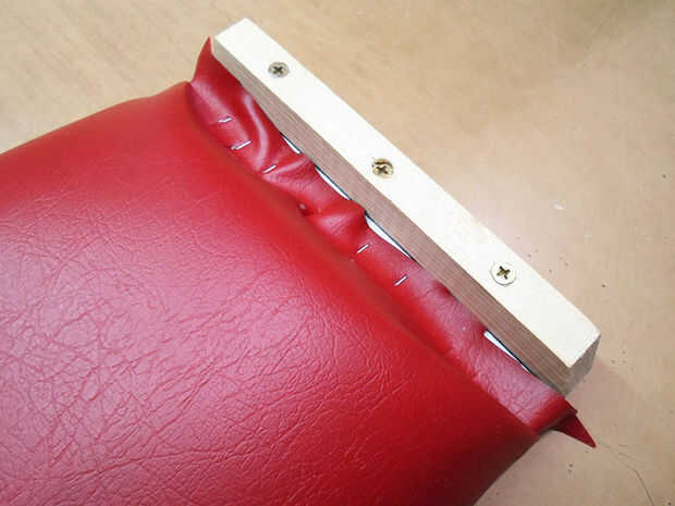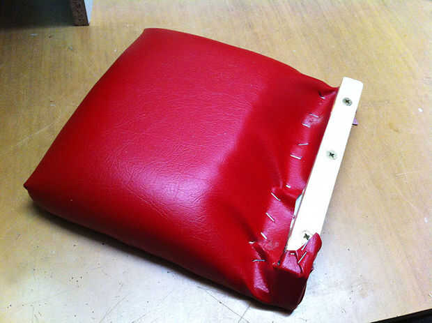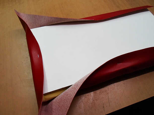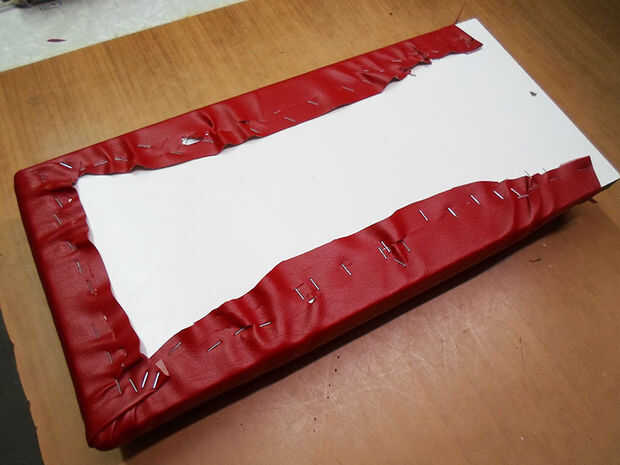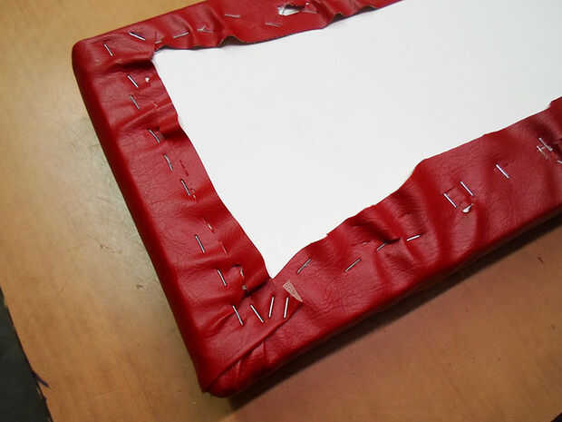 Admito que este paso es un poco difícil de hacer si, como yo, no eres un tapicero real. Se necesita paciencia porque fácilmente se rompe cuero artificial como básico en el, además de necesita para asegurarse de que no hay ninguna mala mirada "olas" en la parte delantera. Puede que necesite quitar grapas de vez en cuando (a menudo hizo realmente)... pero les puedo asegurar que no es imposible!