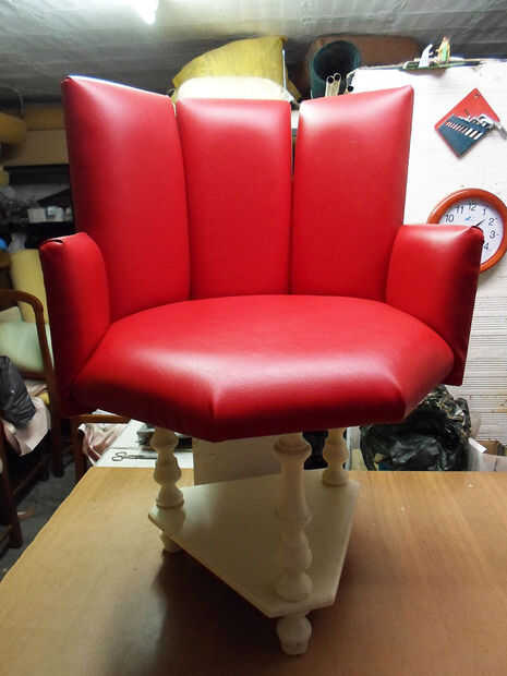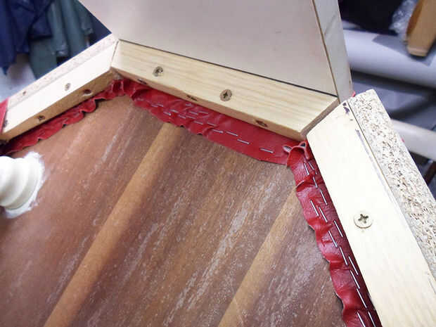 Cuando haya terminado de colocar todas las piezas lo que deben ser y está satisfechos, fíjelos con tornillos en su parte inferior, donde añadido las tiras de madera extra, volcando la silla.