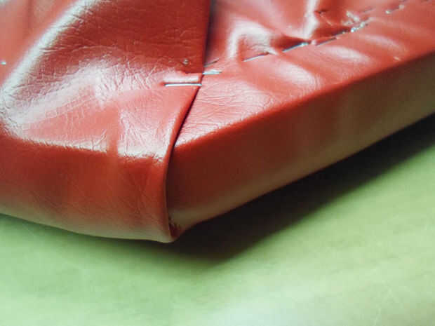 Así, teniendo en cuenta su parte delantera, siguen tire de la tela de los 2 ángulos de los lados adyacentes y les de la grapa.