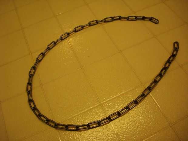 Un amigo tenía alguna cadena extra poniendo alrededor - fue 5mm de grosor y unos 3 metros (9,8 pies largo y.2 pulgadas). Puede utilizar cadena de cualquier espesor - cuanto más gruesa es la molestia más será cortar y menos. Sin embargo, también se convertirá en más de una molestia de llevar con usted.