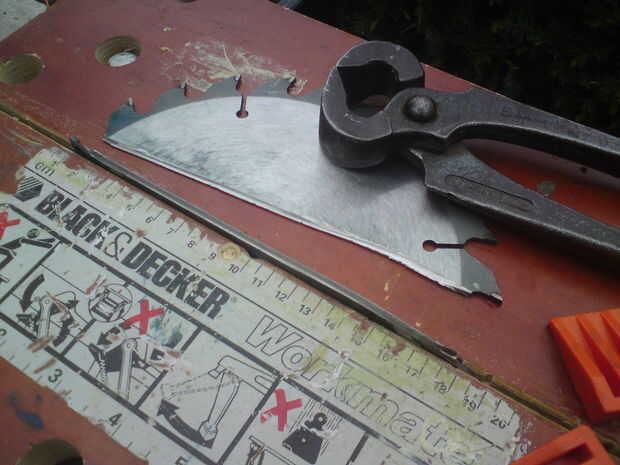 Después de marcar el metal a mitad de camino el metal recta en la mordaza y doblado hacia atrás y forewards hasta que encaje. Si no doblan con facilidad probar anotando más.