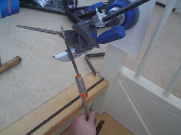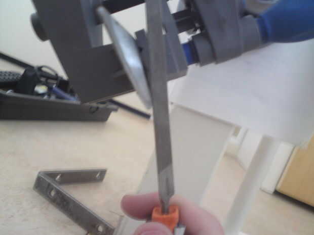 Empecé de creando un filo áspero con la amoladora de ángulo, tratar de mantener el borde tan uniforme como sea posible. después de que i una plantilla afiladora muy improvisada usando una prensa de tornillo dremel y una barra de metal grabado a un identificador de archivo. Aunque Im bastante seguro de no poder ganna exactamente replicar mi set up estoy seguro que usted puede hacer algo para ayudarle a presentar un borde.