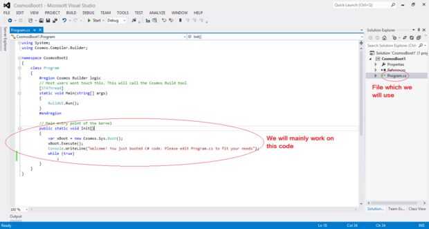 3) ahora verás un archivo "program.cs" en el explorador de soluciones. Haga clic en y cargarlo.