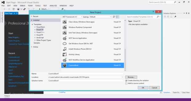2) en el cuadro de diálogo nuevo proyecto, seleccione COSMOS y proyecto COSMOS en el cuadro plantillas. Nombre del proyecto y haga clic en Aceptar.
