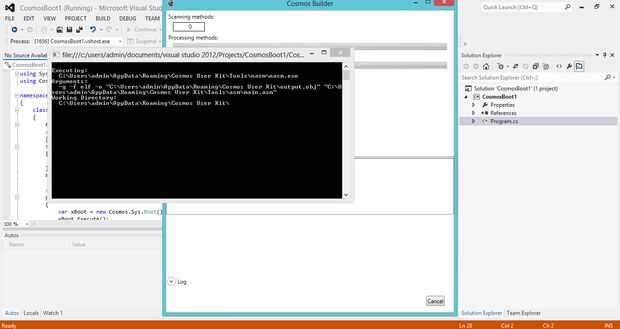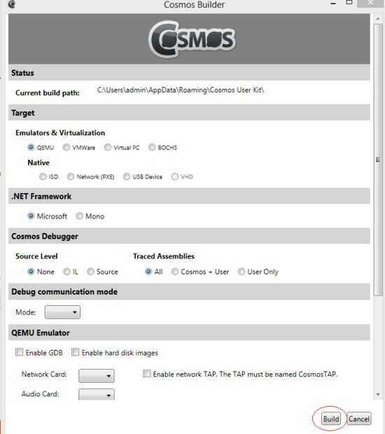 6) verás una ventana constructor COSMOS aparece, sin ninguna modificación, a construir de haga clic en Inicio