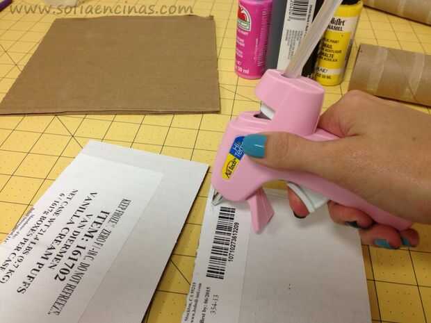 A continuación, tome sus dos piezas de cartón que son del mismo tamaño y pegarlos con pegamento caliente. (primera foto)
